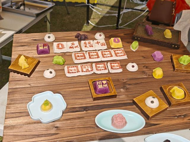 旁边的“湖来市集”同样人头攒动。40余个摊位有序排开,既有周骏牛肉串、长兴干挑面等湖州本土味道,也有徐忠良糕点、薛姐薄皮馄饨等特色小吃。不少球迷一手端着吃食,一手挥舞加油棒,看球与“逛吃”两不误。不远处,浙大湖州研究院的机器人互动区围满了好奇的孩子。